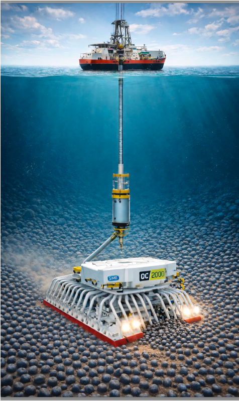 It “scoops underneath and pops” nodules into a collector, then pipes them up to a ship on the surface, Romeo said.
